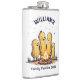 The flask itself is fine. It’s a cheap flask, obviously bought in bulk, however am prepared to overlook that. Given that it is a personalized item, I would have liked to have seen gift boxing instead of the generic packaging. Terrible printing, and/or quality. It’s a cheap, tacky vinyl. It is not cut straight and is also applied in a way that it is overhanging the bottom, causing the glue to catch on items and it will eventually roll and tear, damaging the wrap.