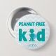 Blue and Teal Personalised Peanut free kid with boy super hero figure on button. Peanut food allergy alert button. Customise with name or other text. Attach to medical bags to note 'epinephrine inside'. Pin to child's clothing, coat or backpack to alert others of food allergy. Designs by Designs by Lil Allergy Advocates www.lilallergyadvocates.com