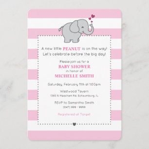 Elephant Baby Girl Baby Shower Little Peanut Invitation