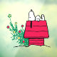 Enjoy this Peanuts holiday design featuring Snoopy sleeping on his dog house beside his Christmas tree.