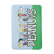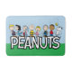 Check out this lineup of the Peanuts gang together, featuring Schroeder and Lucy, Linus with his blanket, Charlie Brown and his sister Sally, Pigpen, Franklin watching Snoopy dance, and Woodstock flying overhead.