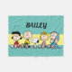 Check out Lucy, Charlie Brown, Snoopy, Sally, and Linus sitting together in a row.