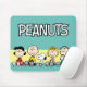 Check out Lucy, Charlie Brown, Snoopy, Sally, and Linus sitting together in a row.