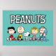 Check out Lucy, Charlie Brown, Snoopy, Sally, and Linus sitting together in a row.