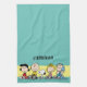 Check out Lucy, Charlie Brown, Snoopy, Sally, and Linus sitting together in a row.