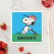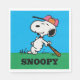 Snoopy, the beloved beagle from the Peanuts comic strip, is often depicted playing baseball with his feathered friend Woodstock and the rest of the Peanuts gang. Here he is featured while at bat.