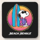 Check out this cute Peanuts design featuring Snoopy at the beach.