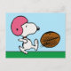 This design features Snoopy, Charlie Brown's beloved beagle, attempting to kick the football himself.