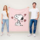 Snuggle season just got a major upgrade! This ultra-plush fleece blanket features Snoopy in his sweetest moment yet—sitting contentedly with his paws clasped together and a happy smile, while pink hearts float around him. The soft pastel pink background adds a dreamy pop of color to your room, making it the perfect companion for movie marathons, lazy Sundays, or whenever you need a little extra love. It’s not just a blanket; it’s a mood.