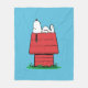 Wrap yourself in pure, cozy nostalgia! This Snoopy Doghouse Blanket is the ultimate accessory for movie night, couch surfing, or achieving Snoopy-level nap expertise. The soft, light blue fleece makes the iconic graphic pop: Snoopy blissfully napping on his bright red doghouse against a hint of green grass. It's the perfect gift for Peanuts fans of all ages and is guaranteed to be your new favorite cuddle buddy. Snuggle up and grab this blanket now—you deserve a nap this good!