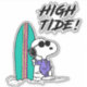 Check out this cute Peanuts design featuring Snoopy at the beach.