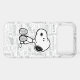 This Peanuts artwork features Snoopy sitting on background of black and white Charles M. Schulz comic strips.