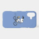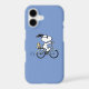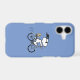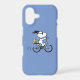 Pedal into style and protect your phone with this adorable blue phone case, featuring Snoopy and Woodstock on a bicycle! This fun case showcases a delightful line-art illustration of Snoopy, wearing sunglasses, happily riding a vintage-style blue bicycle with Woodstock perched safely behind him. The dashed lines behind the back wheel suggest motion, adding to the playful scene, all set against a cheerful light blue background. The phone case has a sleek black bumper for added protection, perfectly framing the vibrant design. This iconic and heartwarming image brings a sense of nostalgic joy and timeless appeal. It's a must-have for any Peanuts fan who loves adventure, friendship, and keeping their phone safe!
