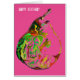 Original art illustration of a pear fruit by artist Sacha Grossel in pop art modern style with customisable pink background. This original painting in pen and watercolour is available here for birthday cards. Bright and colourful with a fruit and vegetable theme. Text can be customised to include any greeting.