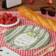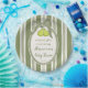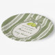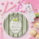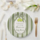 Pear sage green retro stripes baby shower personalized paper plates, retro oval frame hand drawn preppy bow pear baby shower monogrammed paper plates, hand written whimsical baby shower personalized paper plates, pear baby shower party supplies personalized baby shower table decor