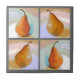 The original design on this Ceramic Tile is a grouping of photos of a fresh Bartlett Pear. The original photography by ZoeSPEAK shows the same pear photographed from two different angles, a still life on a white plate, with different pastel colours of the shadows and background. The pear is brownish orange in colour with a dark brown, curving stem. The background tile colour is a medium grey, but can be changed to another if you prefer. Enjoy the eye appeal of fresh fruit anytime with this tile.