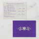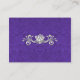 Pretty pearl white swirl damask wedding response card, ready to personalise with your wedding reception information. Graphics of lush purple damask, silver looking floral jewel decoration and pretty pearl white swirl damask designs decorate this beautiful mini RSVP card. Great with our matching purple and silver damask wedding invitations and products.