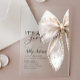 This invitation features a soft pearl beige colour palette, symbolising warmth, purity, and elegance. At its heart is a delicate bow, adding a touch of femininity and charm. Matching items available.