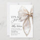 This invitation features a soft pearl beige colour palette, symbolising warmth, purity, and elegance. At its heart is a delicate bow, adding a touch of femininity and charm. Matching items available.