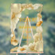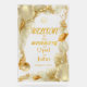 Delicate gold seashell illustrations and flowing botanical textures frame the design with graceful movement, evoking the beauty of ocean tides and sunlit shores. Set against a luminous acrylic backdrop, the pearl-inspired tones and metallic gold detailing catch natural light beautifully, creating a soft glow that enhances ceremony entrances, reception foyers, and photo-worthy wedding moments.
