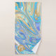 Pearlescent Aqua & Gold Liquid Marble & Monogram Bath Towel Set