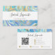 This business card is a very chic and elegant way to display your business information, with its blue, aqua and gold marble design.