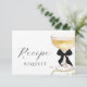 Celebrate the bride-to-be with this elegant "Pearls and Prosecco" bridal shower recipe request card. Featuring a trendy black bow, this card exudes charm and sophistication.