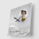 Images of pearls and satin with silver floral damask. The place for your photo is framed with pearls and lace. Simple and elegant. You can change the anniversary year. Pearls and satin are not real