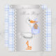 Pearls Blue Gingham Stork Baby Boy Shower Invitation
