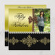 Beautiful, trendy, modern and sophisticated feminine design for women's birthday party events. Elegant and glamourous custom photo birthday party cards with a pretty gold gradient background with a beautiful brown sash bow separating the gold and the photo. The lower half has a black background with 3/three stunning gold brooch decorations of swirls and flourishes, in the middle is a pretty string of white pearls. The reverse has the same printed images and enough space for your event details. These are beautifully designed invitations with cute, stylish, gold and black colours. Perfect for spring/summer events, but can be used for any season . A fashionable modern design with a sophisticated romance look. All text is fully customisable to meet your requirements, if you would like help in customising your product please contact me through my store and i will be very happy to help you.