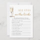 "Pearls & Prosecco All Eyes On The Bride Game" is a captivating bridal shower activity designed to celebrate the bride-to-be in style. Guests are invited to participate in various challenges or tasks that put the spotlight on the bride, such as guessing her favourite things, sharing funny anecdotes, or offering heartfelt advice. With the luxurious touch of pearls and the effervescence of Prosecco, this game elevates the celebration, fostering laughter, camaraderie, and cherished memories. It creates a momentous occasion where all attention is directed towards honouring and celebrating the bride as she embarks on her journey to wedded bliss.