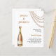 A modern, stylish and glamourous invitation for a Pearls and Prosecco Bridal Shower. A white background with a pearl necklace and a golden bottle of Prosecco. The name is written with a modern hand lettered style script. Personalise and add your party details.