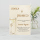 A modern, stylish and glamourous invitation for a Pearls and Prosecco Bridal Shower. A faux gold looking background, a glass with bubbles and pearls. The name is written with a modern hand lettered style script. Personalise and add your party details.