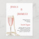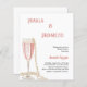A modern, stylish and glamourous invitation for a Pearls and Prosecco Bridal Shower. A white background with a glass with pink bubbles and pearls. The name is written with a modern hand lettered style script. Personalise and add your party details.
