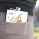 The flask itself is fine. It’s a cheap flask, obviously bought in bulk, however am prepared to overlook that. Given that it is a personalized item, I would have liked to have seen gift boxing instead of the generic packaging. Terrible printing, and/or quality. It’s a cheap, tacky vinyl. It is not cut straight and is also applied in a way that it is overhanging the bottom, causing the glue to catch on items and it will eventually roll and tear, damaging the wrap.