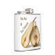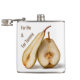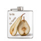 Two pear fruit halves of different shapes leaning against each other. Funny flask. Customisable. You can change the image and you can change or delete three template texts: For me & For Tommy