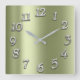 Peas Green Metallic Arabic Numbers Silver Grey Square Wall Clock