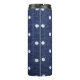 Peas stamp print on denim blue jeans fabric, close up, fashion background
