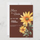 Celebrate your special country-style Wedding Save the Date invitations with our elegant peaty brown, mint green, and orange country sunflower floral wedding invitation design. Our design features our hand-painted watercolor golden yellow sunflowers these elegant country-style invitation details are beautifully designed to create this simple yet elegant wedding invitation. Customise this design with your own message and personalised information. All designs are printed.