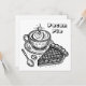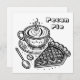 A square flat card. One side is a colouring page with a piece of pecan pie and a cup of coffee. The back is blank so you can keep and colour for yourself or you can send it to a friend and write a note on the back.