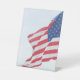 It is sturdy than I expected. Was worried about the material being flimsy but it is not. It is printed on some sort of plastic material. It should serve well at our wedding as long as wind isn’t too bad. Otherwise we will put some paper weights behind it and should be fine.
