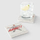 The coasters are gorgeous, a quality feel and heavy weight. They look like a precious archeological find. A rustic stone juxtaposed with a modern floral black and white print. I like the way the print goes slightly imperfect on the cut stone edges giving them a kind-of natural beauty.