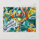 Peeking through a zipper is a vibrant toucan, its colourful beak and bright eyes adding a touch of the tropics. Background of colourful exotic leaves completes the tropical theme and complements the toucan's vibrant colours. Fun typography "Hello Sunshine" adds a friendly touch and reinforces the positive vibe of the design.