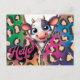Moo-ve over boring postcards, this one's udderly adorable! This eye-catching postcard features a peeking cartoon cow illustrated in a whimsical style. The background is a poppin' rainbow gradient splashed with a fierce neon leopard/cheetah print, making it a true standout. But the real star is the adorable cow peeking through a zipper, complete with a groovy, lettering illustration "Hello" in fun calligraphy typography. It's the perfect way to send a smile and a dash of moo-velous cheer to your besties, fam, or anyone who needs a dose of cuteness. Get ready for the compliments to come uddering in!