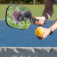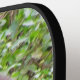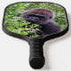 Photo of a cute gorilla peeking out of the bushes on a pickleball paddle.