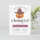A watercolor witches hat and sweet jack-o-lantern pumpkin will make you love this halloween birthday invitation. "Our Little Boo is turning two" is spelled out in whimsical lettering- you can edit for any age! Add rsvp information at the bottom.