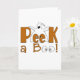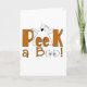 A cute Halloween ghost design on Halloween Peek a Boo T-shirts, bodysuits, mugs, cards, stickers, trick or treat bags, and other Halloween clothing and gift items!