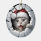 This adorable Christmas ornament features a playful kitten peeking through a hole, wearing a Santa hat. It's the perfect addition to any Christmas tree and a great gift for cat lovers.