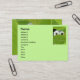 A fun playful namecard for owl lovers!! Hoot! Hoot! My name’s Ophelia and contrary to popular opinion of what owls are like, I’m normally awake by noon. I feel that life is too short to sleep it away, 5 to 6 hours is good enough for me. There’s so much to feel, be and learn here in this world that I am not going to limit my experiences to night life only. I just love the colour green and almost everything that’s green:D Here I am, taking a little break from the hustle and bustle of city life :D - This little owl finger puppet toy was a gift from a friend. She bought it at San Frans during her honeymoon there, how sweet!