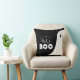 A cute ghost peeks out from the edge of the pillow. "Peek a BOO" text in fun handwritten style fonts. All colours are editable - background, text elements, and ghost (just be sure to edit both sides). Personalise the curved text with a family name, etc. © Kimbellished, LLC